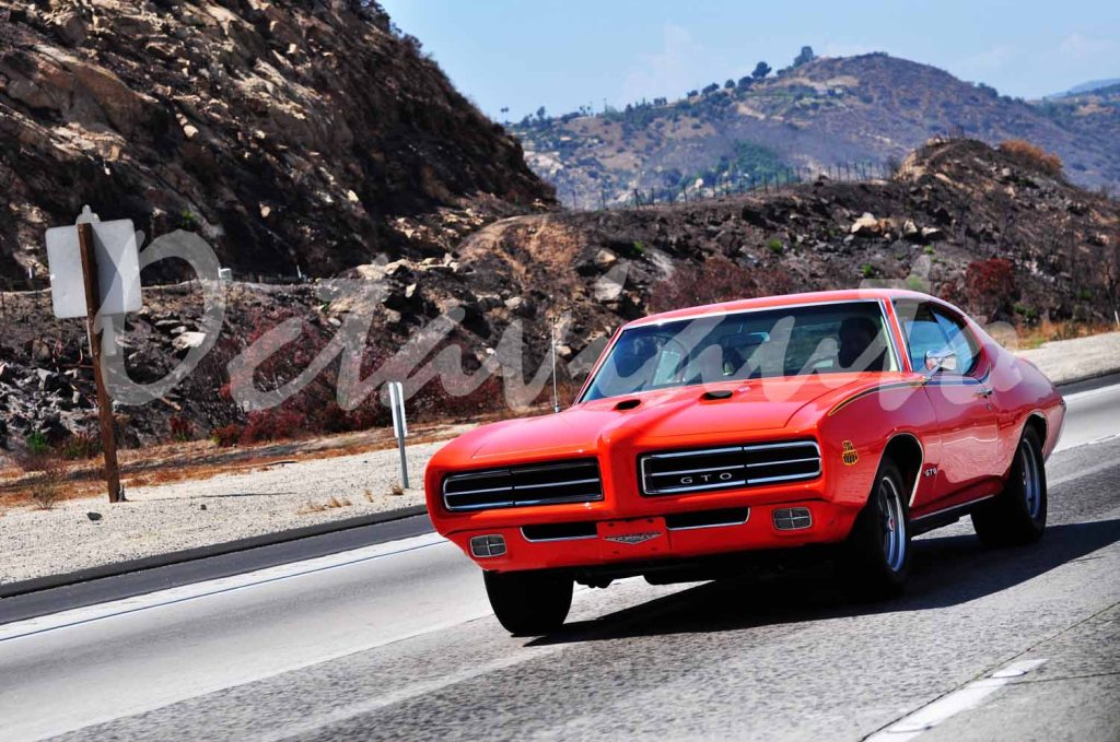 Caught on a California freeway, this 1969 Pontiac GTO added immediate colour to the bland sepia of the desert surroundings.